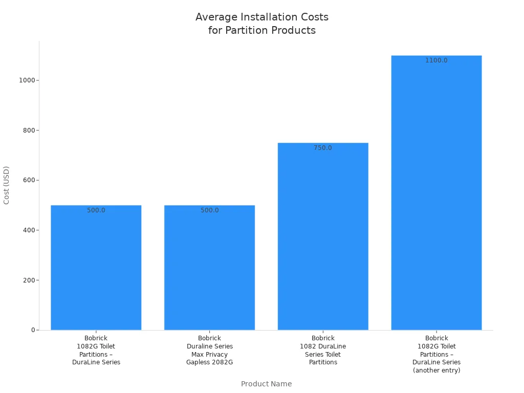 Installation costs for full-height and zero-gap partitions can vary based on product type and project needs. The table below shows the average installation costs for several commercial restroom partition products:
